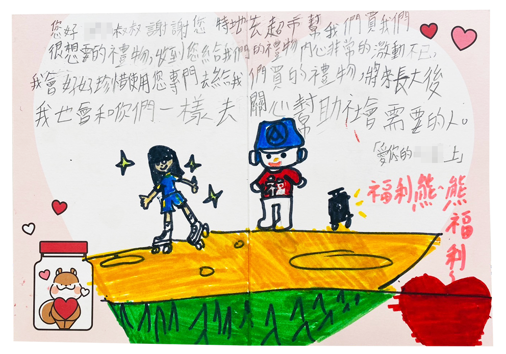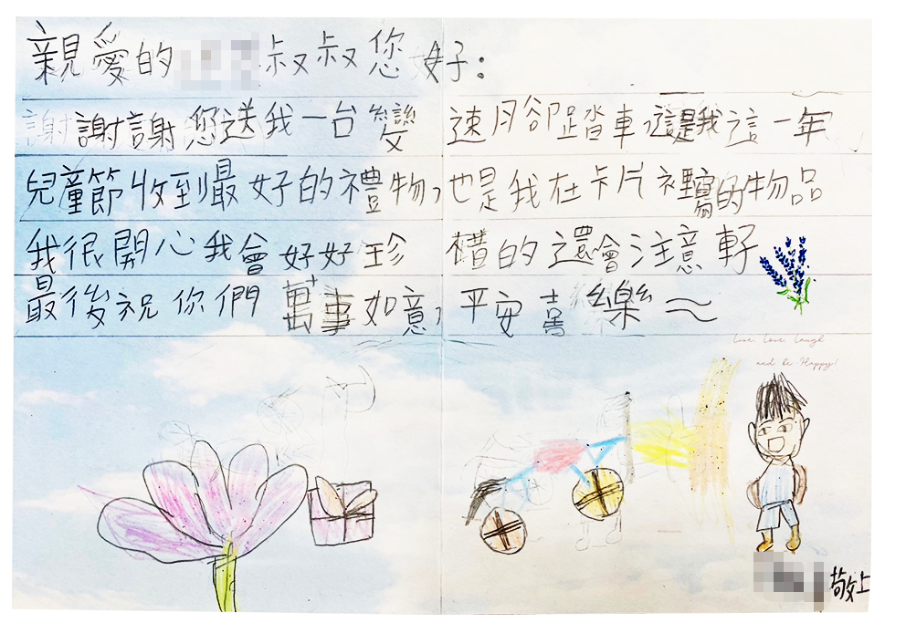 歡迎認養者寫信鼓勵小朋友,但因個資保護,卡片內容請避免提到個人資訊, 感謝大家的配合。